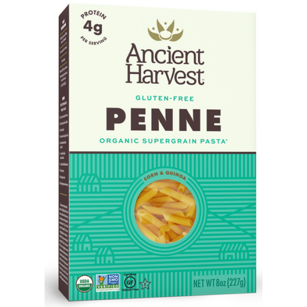 Биопаста Ancient Harvest Organic Gluten Free Penne Supergrain Pasta изготовлена только из лучших органических ингредиентов, предлагаемых природой. Наша сертифицированная безглютеновая паста на основе суперзерновых продуктов имеет вкус и текстуру традиционной пасты и является хорошим выбором для людей с аллергией на пшеницу и глютен, а также для питания пожилых людей и диабетиков.