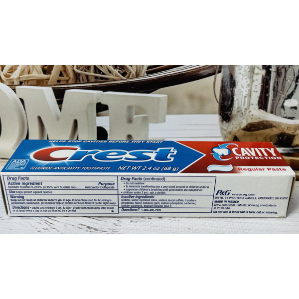 До складу Crest Cavity Protection входять такі елементи як кальцій і фосфор, які є утворюючими елементами емалі зуба. Дослідниками доведено, що при значному вмісті цих елементів в емалі зуба істотно підвищується опірність твердих тканин зуба до появи карієсу.