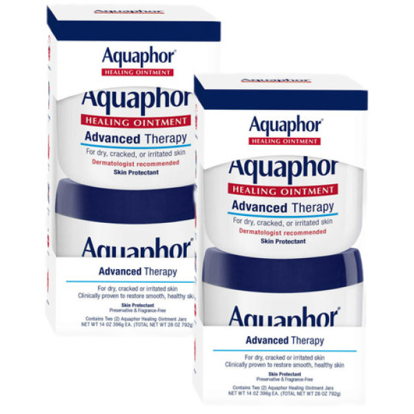 Aquaphor Advanced Therapy Healing Ointment 14 oz, 4 count - это незаменимое средство для ухода за кожей. Оно увлажняет губы, кожу рук и стоп, помогает заживлять небольшие повреждения и имеет много других полезных свойств. Отличие этого мази от лосьона или крема заключается в том, что она питает кожу и создает защитный барьер, пропускающий кислород и создающий идеальную среду для заживления. Кроме того, она подходит для чувствительной кожи, так как не содержит консервантов и ароматизаторов, и клинически доказано, что восстанавливает здоровую кожу. Внешний вид мази может незначительно отличаться из-за особенностей ингредиентов, но это не влияет на ее безопасность и эффективность. 4 банки объемом 14 унций - это оптимальный размер для всей семьи. Мазь также защищает кожу от натирания, мозолей, сухой или шелушащейся кожи, вызванной обгоранием на ветру, холодом или сухим воздухом. Она смягчает кутикулы и защищает, способствуя заживлению сухих и треснувших рук или пяток. Мазь также помогает заживлять небольшие порезы, ссадины и ожоги. Она идеально подходит для защиты кожи во время бега, велосипедных прогулок, плавания или занятий спортом. Aquaphor Advanced Therapy Healing Ointment - непрозрачная белая или светло-желтая мазь, которая сможет помочь вам с любыми проблемами кожи.