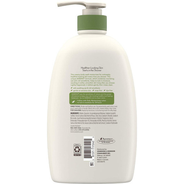 Aveeno Daily Moisturizing Body Wash содержит уникальное сочетание увлажняющего овсяного молочка и питательных эмолентов, которые защищают кожу от сухости и ухаживают за ней. Его формула оказывает успокаивающее действие, снимает сухость и придаёт коже шелковистость и увлажнение, даже после смывания пенки.