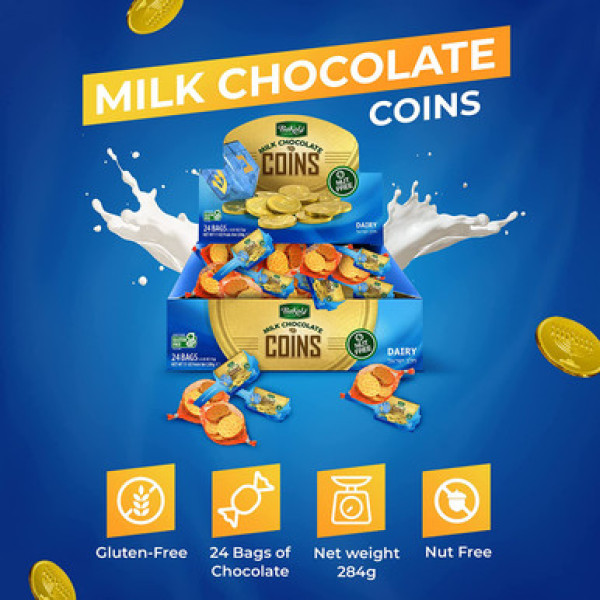 Эти шоколадные монетки Хануки являются идеальным подарком. Наслаждайтесь вкусом этого молочного шоколада.