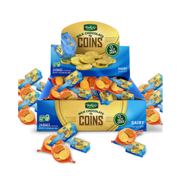 Большой выбор молочного шоколада Бакол Ханука, без орехов, в наборе 24 монеты для Хануки с доставкой