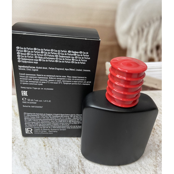 Про продукті Верхні ноти: цитрусові, апельсин, кардамон, гвоздика, базилік. Ноти серця: жасмин, лаванда, кедр. Базові ноти: амбра, мускус, ваніль. Унікальні аромати з Німеччини від кращих світових парфумерів. Європейська сертифікація. Рівень кращих парфумерних будинком і світових брендів. Власне виробництво компанії LR Health & Beauty System в Німеччині з контролем якості. Стійкі аромати з високим вмістом ароматичних масел. Участь і номінування у світових відбіркових заходах на відбір кращих ароматів.