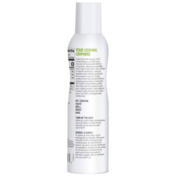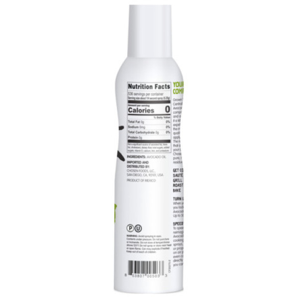 Chosen Foods Avocado Oil Spray – ваш надежный помощник на кухне. Благодаря использованию 100% натуральных и зрелых коричневых авокадо, оно имеет низкую плотность процессов, что позитивно сказывается на сохранении полезных веществ. Это масло обладает невероятной термостабильностью – вы сможете использовать его для жарки и выпекания при температуре до 500 градусов по Фаренгейту. Вас порадует его нежный аромат и вкус, а также мягкая текстура идеально подходит для ванильного пряника, тушения овощей или сковородки. Отличительной особенностью данного масла является применение без химических пропеллеров и других вредных добавок. Chosen Foods Avocado Oil Spray состоит только из 100% чистого авокадо без каких-либо примесей, и это делает его безопасным и приятным выбором для ваших кулинарных потребностей. Благодаря своему высокому содержанию мононенасыщенных жиров и отсутствию холестерина, использование этого масла позволит вам приготовить блюда, способствующие вашему здоровью. Попробуйте Chosen Foods Avocado Oil Spray и насладитесь его уникальными вкусовыми качествами и богатым пищевым составом!