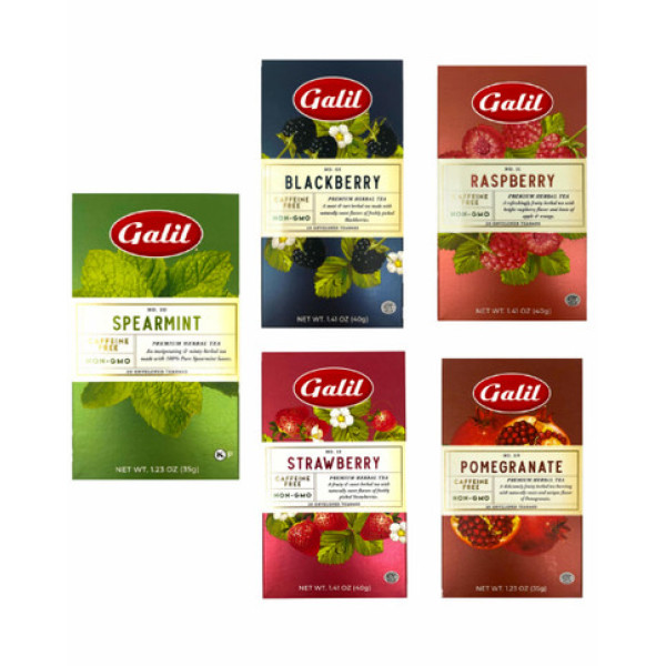 Набор Galil Variety Pack Herbal Tea 5 Flavor Tea Sampler включает в себя 120 пакетиков чая. Все виды чая в наборе являются натуральными и не содержат кофеина, что обеспечивает вам последующий прилив энергии и бодрости без негативного воздействия на нервную систему. Более того, данный чай является не-GMO и имеет сертификат кашрута, что подтверждает его высокое качество и соответствие требованиям.