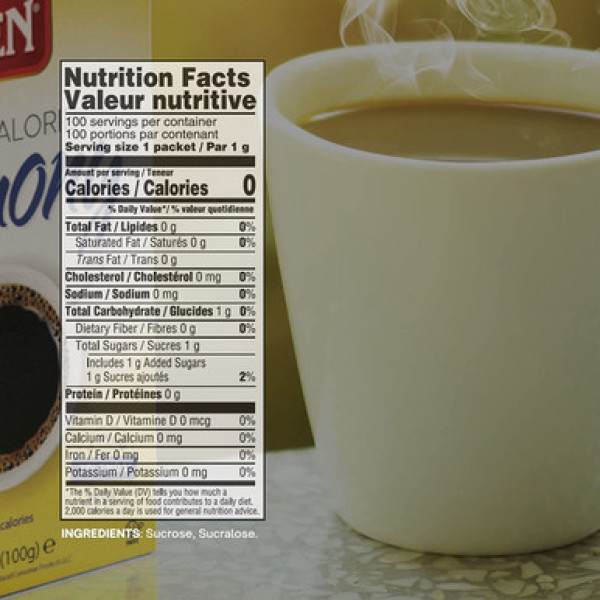 Сладкий вкус сахара без лишних калорий, каждый пакет соответствует примерно двум столовым ложкам сахара.