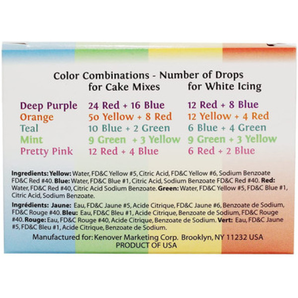 В наборе представлены четыре флакона емкостью 0,25 унций каждый. Краситель пищевой Gefen Rainbow - это качественные красители, включающие в себя такие цвета, как красный, желтый, зеленый и синий. Благодаря этим красителям вы без труда сможете добавить оригинальность десяткам разных рецептов, делая их еще более яркими и привлекательными. Независимо от того, что вы готовите - выпечку или напитки, красители Gefen Rainbow позволят вам проявить свою креативность. При желании вы сможете смешивать и сочетать разные цвета для создания собственных оттенков. Благодаря тщательно подобранным ингредиентам красители не содержат глютена, что делает их безопасными для потребления. Более того, они сертифицированы как kosher и могут использоваться как на праздник Пасхи, так и ежедневно. Позвольте себе сделать кулинарный процесс еще более творческим и ярким с помощью красителей пищевых Gefen Rainbow.