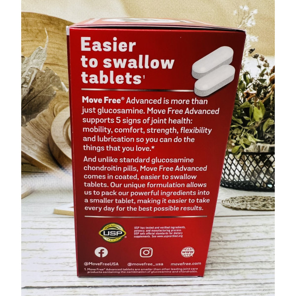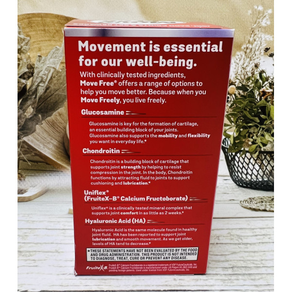 Move Free Advanced підтримує 5 ознак здоров'я суглобів: мобільність, гнучкість, міцність, мастило та комфорт, тому ви можете робити те, що вам подобається. Він робить це, надаючи вам високоякісні складові здоров'я: глюкозамін, хондроїтин, уніфлекс та гіалуронову кислоту (HA).