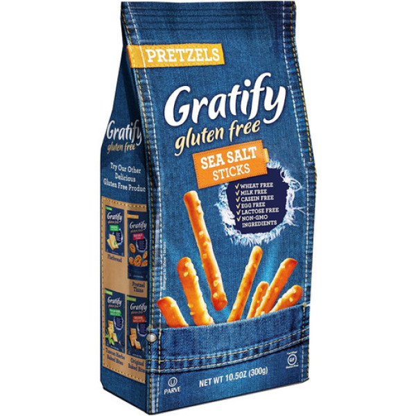 Gratify Gluten Free Sea Salt Pretzel Sticks - настоящая находка для искушенных гурманов, стильных гурманов и всех желающих попробовать вкус наших эксклюзивных и безупречных закусок.