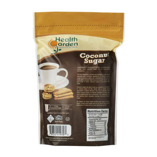 Health Garden Organic Palm Coconut Sugar, или, по-настоящему, органический сахар из пальмового кокоса – это главный и единственный ингредиент в этом натуральном, вкусном и полезном подсластителе. Пальмовый кокос является специализированным культурным растением, и его кора и плоды дают продукт, который взаимозаменяем с сахаром, но имеет низкий гликемический индекс. Взаимодействие вкусов и сахарного вкуса делает пальмовый кокосовый сахар предпочтительным заменителем коричневого сахара. Этот сахар значительно богат калием, цинком, магнием, железом и другими необходимыми минералами, отсутствующими в коричневом сахаре.