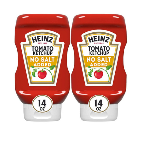 Heinz No Salt Added Tomato Ketchup, 14 oz (Pack of 2)