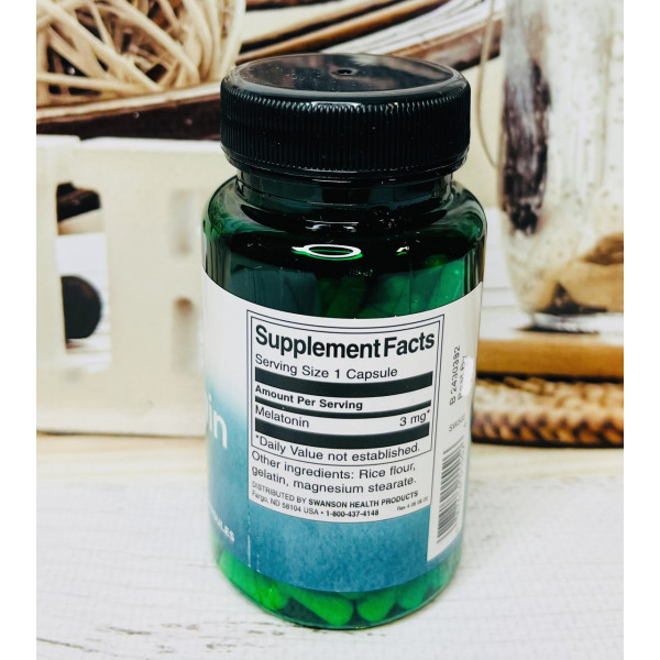 Контролюйте свій цикл сну / неспання за допомогою мелатоніну Swanson! Цей корисний гормон працює для відновлення нормального сну режиму, забезпечуючи при цьому відмінну антиоксидантну підтримку організму. Кожна капсула містить 3мг мелатоніну. Інші інгредієнти: рисове борошно, желатин.