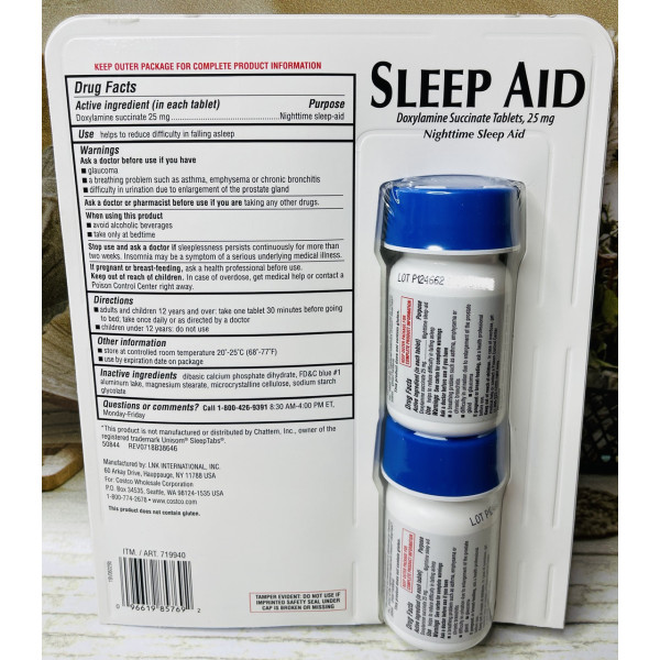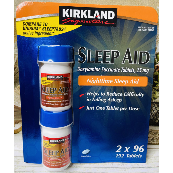Активним інгредієнтом Kirkland Signature Sleep Aid Tablets є доксиламін сукцинат 25 мг, антигістамінний препарат, який може використовуватися як засіб для сну дорослими та дітьми від 12 років і старше. Таблетки Kirkland Signature Sleep Aid легко ковтати, вони допомагають зменшити труднощі із засинанням.