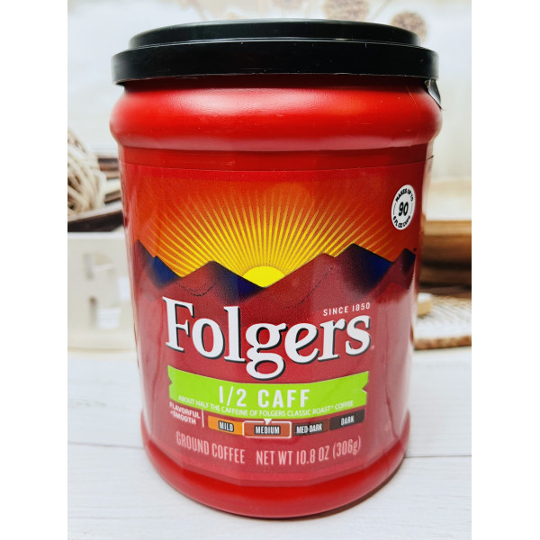 Насолоджуйтесь найкращою частиною ранку чи дня навіть якщо ви зменшуєте споживання кофеїну. Кава Folgers Half Caff дуже ароматна, з усім насиченим, чистим смаком і класичним ароматом, який ви любите, але менше кофеїну. Кава містить приблизно половину кофеїну, ніж класична кава.
