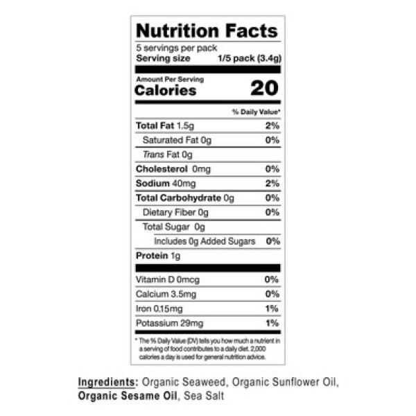Ингредиенты: органические водоросли, органическое подсолнечное масло, органическое кунжутное масло, морская соль.