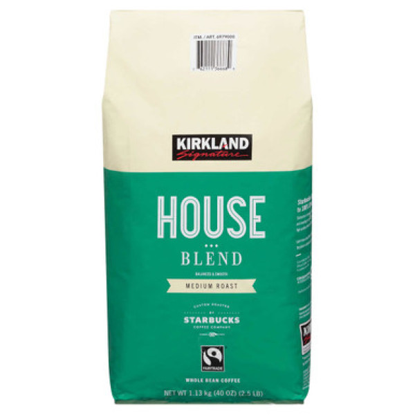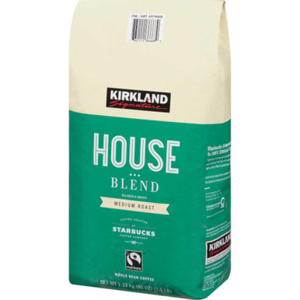 Custom Roasted by Starbucks, средняя обжарка, нежное сбалансированное сочетание - это неповторимые черты кофе Kirkland Starbucks Whole Bean House Blend. Приобретая этот кофе, вы даете свою поддержку Fair Trade Certified и оказываете поддержку проекту Kosher for Passover на протяжении всего года.