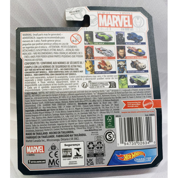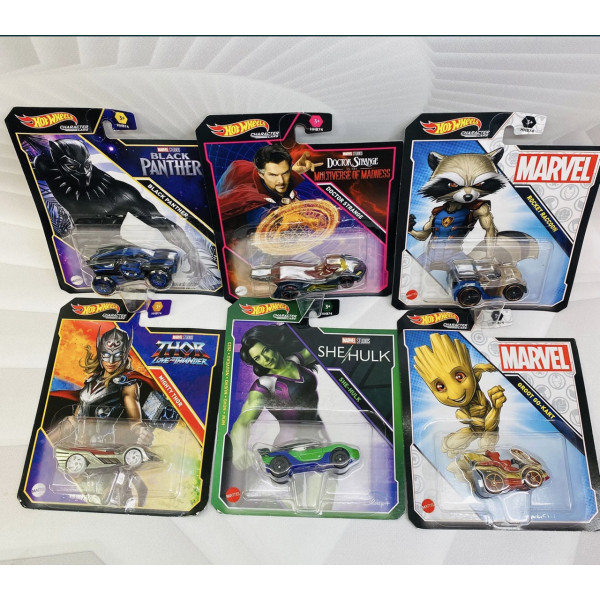 В цей набір входить: She hulk ,Mighty Thor, Black panther, Doctor Strange, Rocket Raccoon, Groot Go-kart