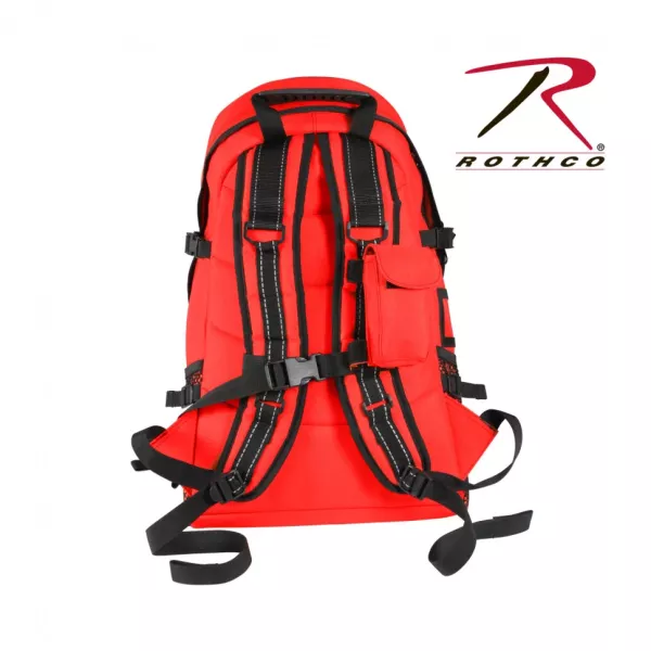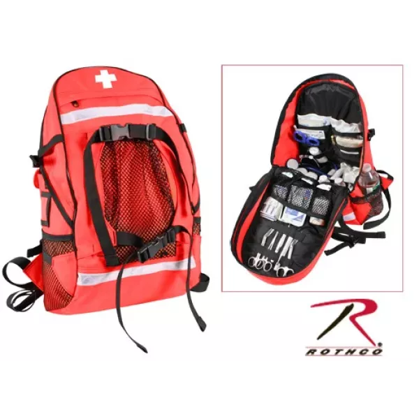 Красный рюкзак для экстренных медицинских случаев предназначен для профессиональных спасателей и врачей. Он имеет большое основное отделение, оборудованное множеством карманов, сетчатых отсеков, закрепляющих ремешков и эластичных лент для удобного размещения инструментов, лекарств, медицинских ножниц и других принадлежностей. Внутри рюкзака есть мягкая съемная вставка с шестью отделениями. На внешней стороне рюкзака есть карман на молнии и сетчатый карман с двумя регулируемыми стропами на пряжке, предназначенными для фиксации. Также имеются боковые сетчатые карманы с регулируемыми ремешками для пластиковых бутылок с питьевой водой. Спинка рюкзака обита подкладкой для дополнительного комфорта. Плечевые лямки обладают регулировкой и подпоролонены, а на левой лямке есть сумка для мобильного телефона или рации. Для фиксации плечевых лямок служит нагрудный ремешок с пряжкой. Верхняя часть рюкзака оснащена ручкой для удобной переноски. На внешней стороне рюкзака находятся две горизонтальные световозвращающие полосы и медицинский крест. Материал рюкзака - 600 Денье полиэстер с ПВХ покрытием. Цвет рюкзака - красный. Размеры: 30 x 47 x 20 см. Данный рюкзак Rothco EMS Trauma Backpack - Red, код товара 2445, пр-во ROTHCO Morris Rothenberg & Son, Inc. (NY, USA). Изготовлен в Китае для США.