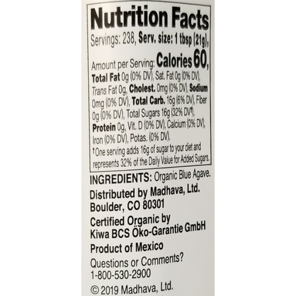 Madhava Organic Agave Nectar Amber - это сладкая сироп, содержащая фруктозу и декстрозу.