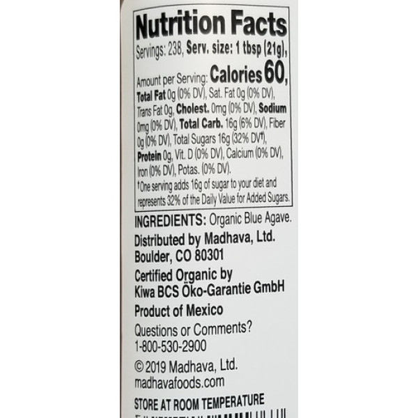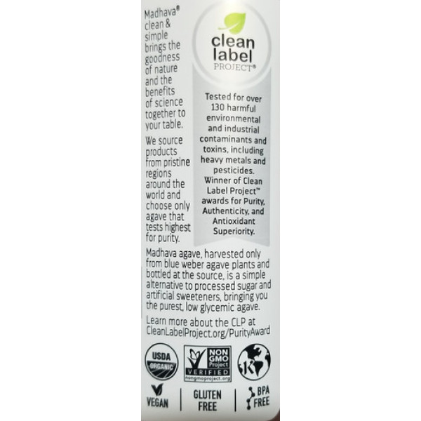 Мадхава Органический Светлый Агавовый нектар - попробуйте и ощутите разницу! Насладитесь всего каплей этого вкусного органического синего агавового нектара из бутылки объемом 176 унций.