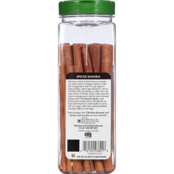 McCormick Gourmet Organic Cinnamon Sticks - это органические корицевые палочки от известного производителя специй McCormick. Вместительный контейнер весом 8 унций позволит вам наслаждаться ароматом и вкусом корицы в течение долгого времени.