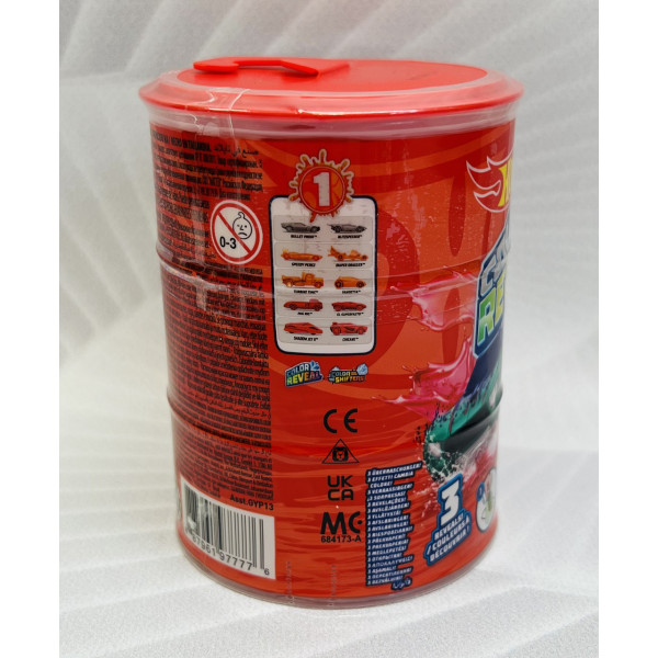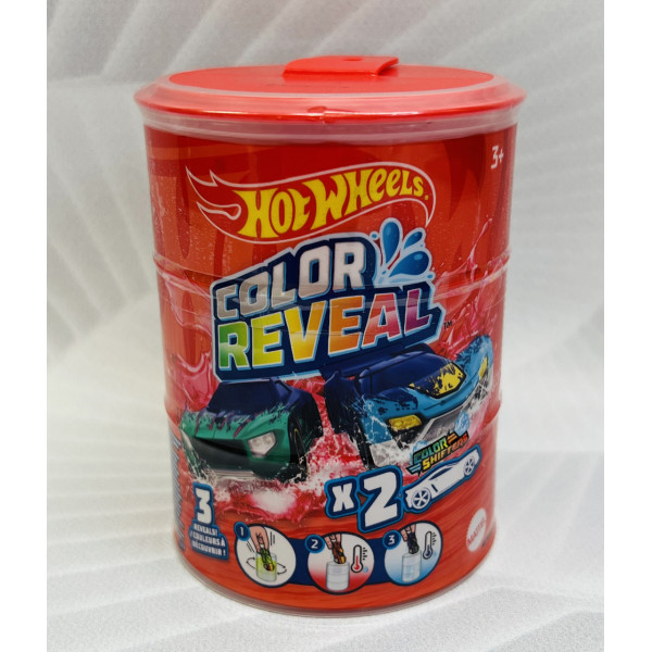 Набір Hot Wheels Color Reveal містить 2 автомобілі Hot Wheels Color Reveal у масштабі 1:64 у бочці, кожна з яких містить 2 несподіваних деко, які чекають свого відкриття.