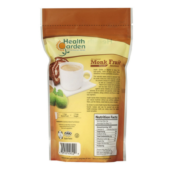 Health Garden Monk Fruit Sweetener Classic - натуральный сладкий продукт, извлеченный из экзотического монаха фрукта, который веками использовался древними китайцами в качестве лекарственного средства и подсластителя. Монк-сахар богат антиоксидантами и известен благотворными свойствами против диабета и других заболеваний. Его отсутствие калорий и гликемический индекс делает его безопасным для диабетиков, аллергиков и людей, следящих за своей весом.