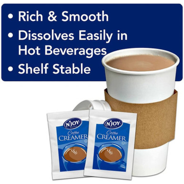 Необходимый атрибут для создания идеального чашки кофе – пакеты нежирного кофейного кремера N'Joy Non-Dairy Powdered Creamer Packets, 1000 Count. Этот огромный ящик кофейного кремера идеально подходит для любого владельца бизнеса, будь то предприниматель в сфере общественного питания или офисный менеджер, предоставляющий кофе своим сотрудникам, клиентам или покупателям.