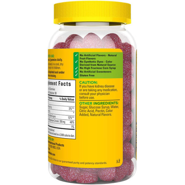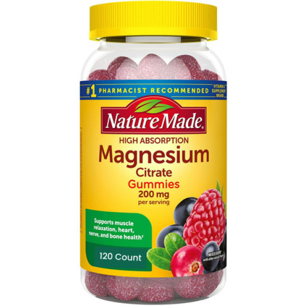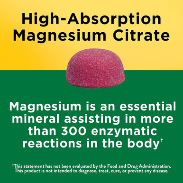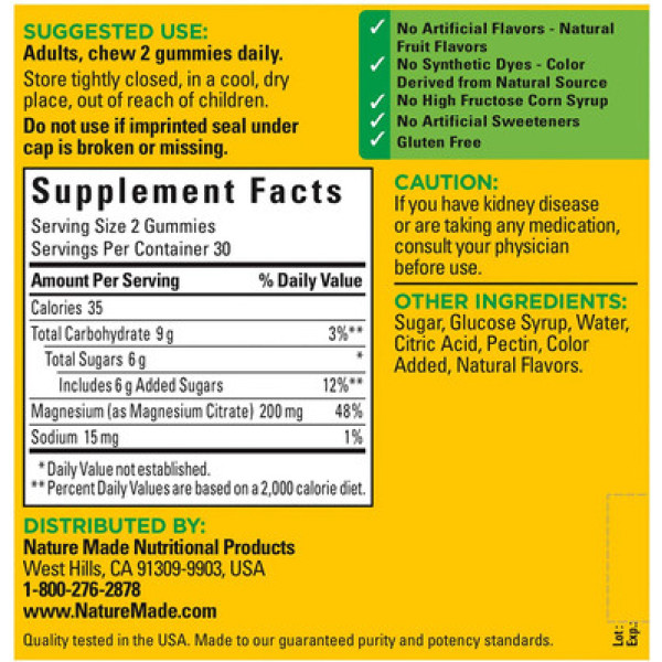 Натуральные жевательные конфетки Nature Made Magnesium Citrate Gummies с содержанием 200 мг магния являются идеальным дополнением для поддержки работы мышц, сердца, нервов и костей. Эти ароматные конфетки имеют вкус смешанных ягод и не содержат искусственных ароматизаторов, красителей, кукурузного сиропа высокого содержания фруктозы и искусственных подсластителей.