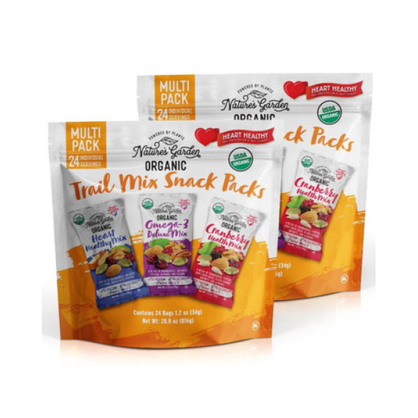 Обладателям любви к природе и здоровому образу жизни предлагаем замечательный выбор - Nature's Garden Organic Trail Mix Snack Packs, (48 штук). Этот многопакет снэк содержит три роскошных органических смеси трейл-микс в одном большом пакете. Это незаменимая находка для всей семьи, детей и всех, кто любит разнообразие.