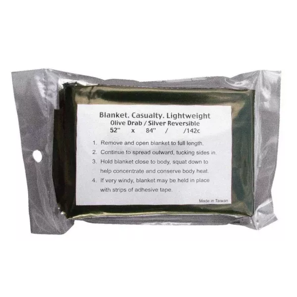 Одеяло выживания Rothco Lightweight Survival Blanket Olive Drab размером 132 x 214 см представляет собой спасательную двухстороннюю термическую пленку из полиэстера, покрытую металлизированным отражающим материалом серебристого оттенка. Оно эффективно снижает потерю тепла человеческим организмом в экстренных ситуациях. Широко применяется военными, туристами и путешественниками благодаря своей легкости, водонепроницаемости и защите от ветра. Одеяло можно использовать как покрывало. Чтобы защититься от холода, его нужно использовать с серебристой стороной внутрь, а при перегреве — наружу. Вес изделия составляет 68 гр. Оно выполнено из полиэстера и алюминия. Цвет изделия - оливковый. У этого покрывала штрих-код 613902990708. Производитель: ROTHCO (Нью-Йорк, США). Произведено в Тайване.