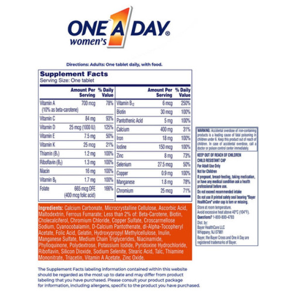 One A Day Women's идеально подходит для женщин, которые хотят поддерживать свое здоровье и энергию на высшем уровне. Продукт основан на многолетнем опыте и экспертизе в области питания. One A Day предлагает надежные и специально разработанные мультивитамины, которые обеспечивают поддержку витальных органов на протяжении всей жизни.