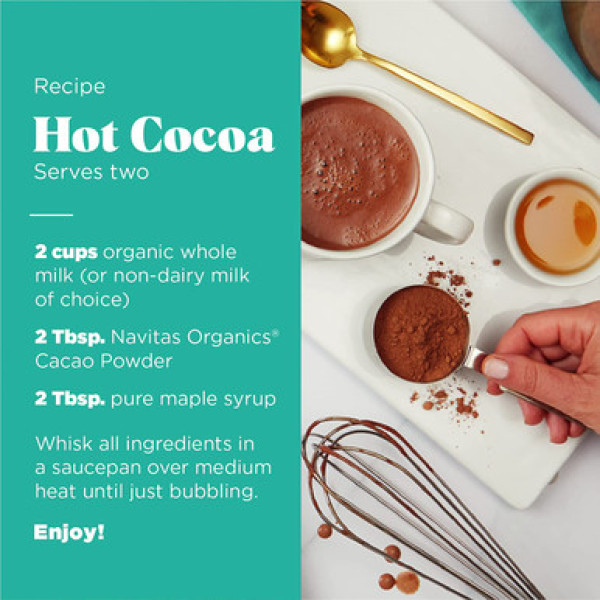 Натуральный порошок какао Navitas Organics изготовлен с одними из лучших какао бобов, сертифицированных Fairtrade, выращенными по органическим стандартам, благодаря чему полезно как для производителей, так и для окружающей среды, а также для здоровья вашего организма! Прекрасный насыщенный вкус горячего шоколада без добавления сахара. Заменяйте на регулярный, несладкий какао порошок в полосе, шейках, горячем шоколаде, лепешках, кето и палео десертах и многое другое в соотношении 1:1! Натуральный порошок какао Navitas Organics является мощной питательной альтернативой обычному порошку какао: содержит 25% DV (дневная стоимость) магния, 10% DV железа, 19% DV волокон и 195 мг антиоксидантов (флаванолов) на порцию. Также порошок какао Navitas Organics выращен в Сьерра-Леоне, где мы с гордостью инвестируем в кооперативы какао, школы фермеров, планирование восстановления лесов и справедливый труд. Наш порошок представляет собой подлинную органическую, сертифицированную урожайность, не-ГМО продукты с отличным вкусом и полезной ценностью.