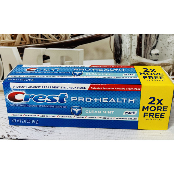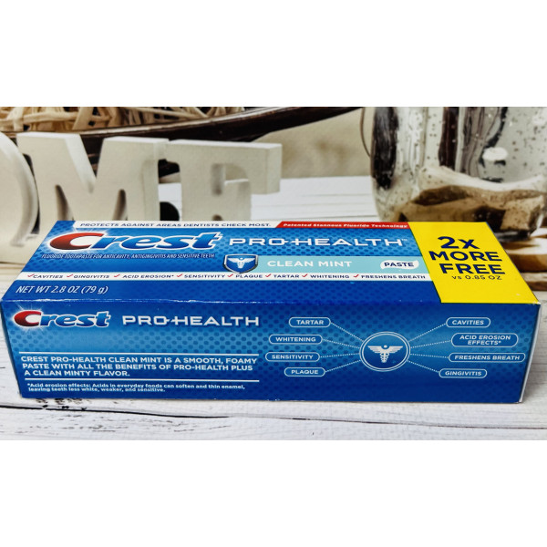 Секрет пасти Crest (хрест) Pro-Health полягає в оздоравливающем ефекті. Крім того, ефективно бореться з карієсом, запобігає появі гінгівіту, зменшує чутливість зубів, видаляє плями на зубах і до 99% нальоту.