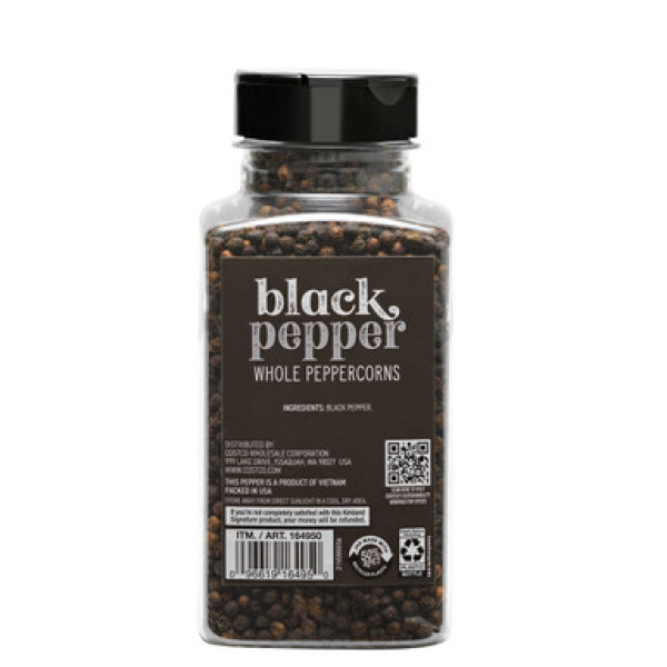 Большая банка объемом 14.1 унции обеспечивает долговременное использование. Кроме того, данный перец проходит процедуру паровой стерилизации, что гарантирует его безопасность. Помимо этого, Kirkland Whole Black Peppercorn получил высокую оценку косерности, обладая сертификатом OU.