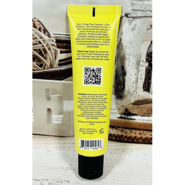 Це домашній хімічний пілінг-ексфоліатор для освітлення шкіри, який очищає пори від надлишку жиру та забруднення, одночасно помітно омолоджуючи тон і текстуру шкіри завдяки ензимній пілінговій дії папаїну та відновлюючим властивостям екстрактів яблука та граната. Цей супергерой шкіри також містить вітамін С, потужний антиоксидант, а олія лимонної цедри освітлює шкіру, надаючи їй здорового молодого сяйва.