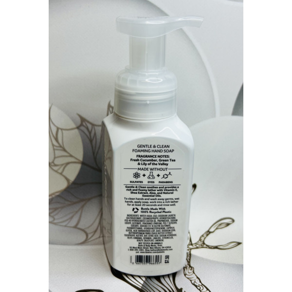 Пінисте мило Bath and Body Works Gentle Foaming Hand Soap при натисканні на диспенсер перетворюється на ніжну, м'яку повітряну пінку. Очищає Вашу шкіру рук від бруду та мікробів. Алое та поживний вітамін Е, що входять до складу мила, роблять її м'якою, гладкою та ароматною.