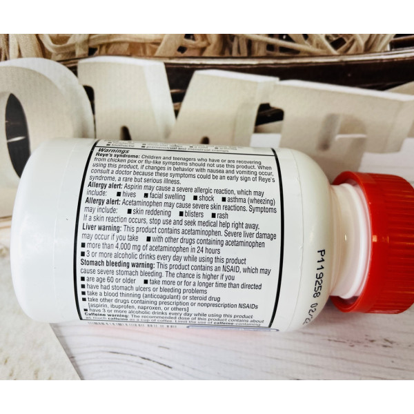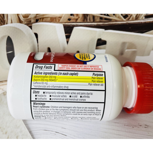 Equate Headache Relief – комбінований препарат від мігрені, що містить Acetaminophen (250mg), Aspirin (250mg), Caffeine (65mg).