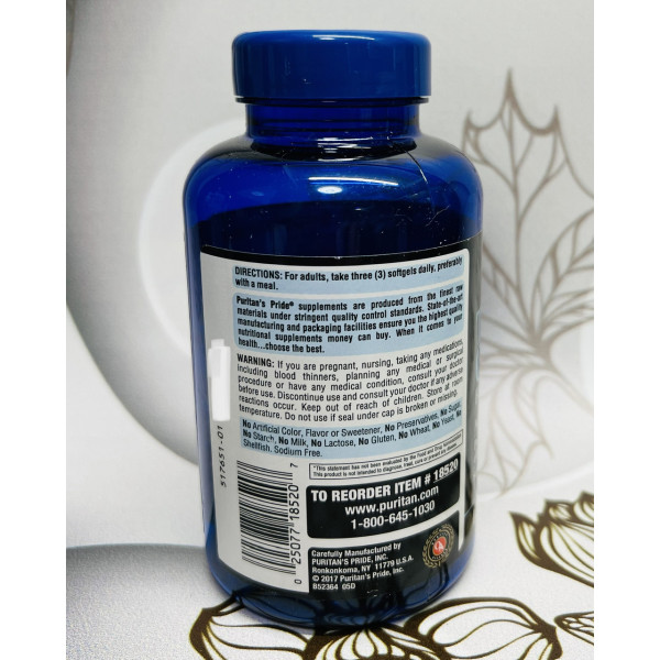 Puritan`s Pride Triple Omega 3-6-9 Maximum Strength – це біологічно активна харчова добавка для спортсменів та просто активних людей. Комплекс американського виробника містить критично необхідні для організму жирні кислоти Омега-3. Без цих компонентів неможливе зростання м'язової маси. Засіб також сприяє схуднення. Регулярне вживання цієї харчової добавки знизить ризик проблем із серцево-судинною системою. Тому продукт слушно назвати порятунком від хвороб цивілізації. Він заповнює дефіцит важливих здоров'я речовин.