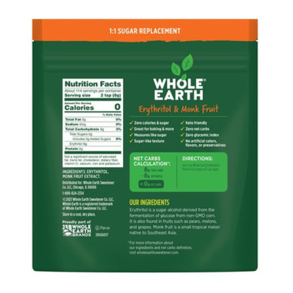 Сахарная замена Whole Earth Erythritol & Monk Fruit, 32 унции.
