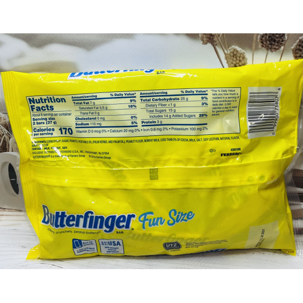 Butterfinger - знамениті шоколадні цукерки компанії Nestle c начинкою з арахісової пасти та хрусткою карамельною текстурою. Вперше були виготовлені 1923 року в Чикаго.
