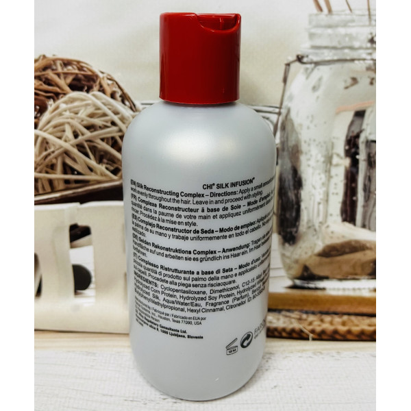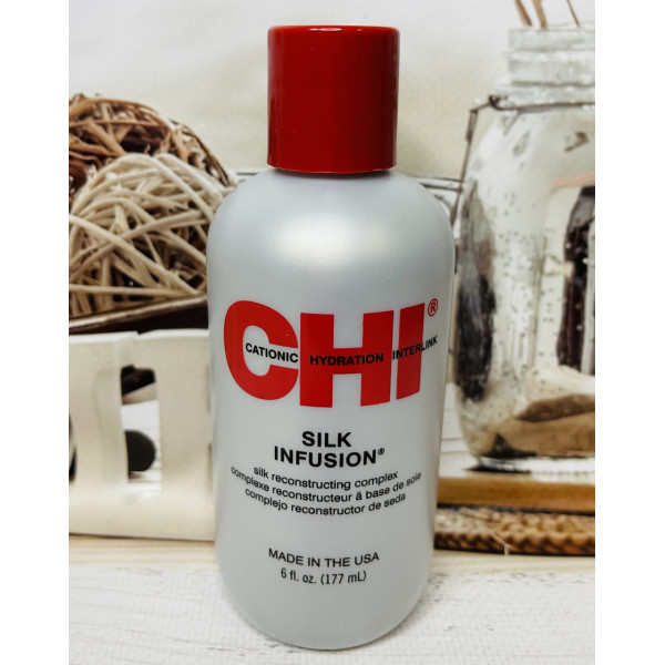 Гель відновлювальний Шовкова інфузія Silk Infusion — для всіх типів волосся, створений на основі натурального шовку, входить до складу системи, призначеної для щоденного застосування, і використовується в догляді за нормальним і схильним до сухості волоссям, а також за волоссям, що зазнало освітлення або інших хімічних процедур. Гель має як основний компонент натуральний шовк, як найближчий за складом матеріал, до людського волосся. Гель відновлювальний Шовкова Інфузія Silk Infusion CHI — це насичений засіб, що має неймовірні відновлювальні властивості, що не потребують змивання. Збагачене натуральним шовком, протеїнами сої та пшениці, забезпечує органічну взаємодію з тканиною волосся. Підходить для щоденного застосування, має