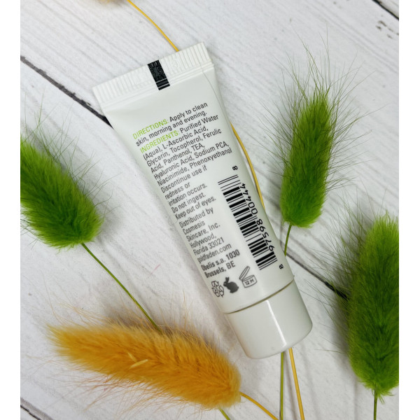 — вітамін С (L-аскорбінова кислота) 9%, ферулова кислота 3%, вітамін B 3%, і вітамін Е 2% (альфа-токоферол), ретельно підібрані на процентних рівнях