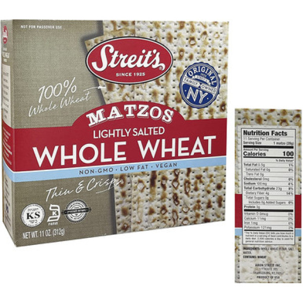 Нежные и хрустящие матцы Streit's Whole Wheat Lightly Salted - это настоящий шедевр в мире веганской выпечки. Благодаря использованию высококачественных ингредиентов, каждый кусочек этого легкого и легко соленого хлеба обещает превосходный вкус. Легкие матцы сделаны из полезной цельнозерновой пшеницы, что делает их не только вкусными, но и полезными для вашего организма. Их идеальное сочетание пушистости и хрустящести не оставит равнодушным даже самого взыскательного гурмана.