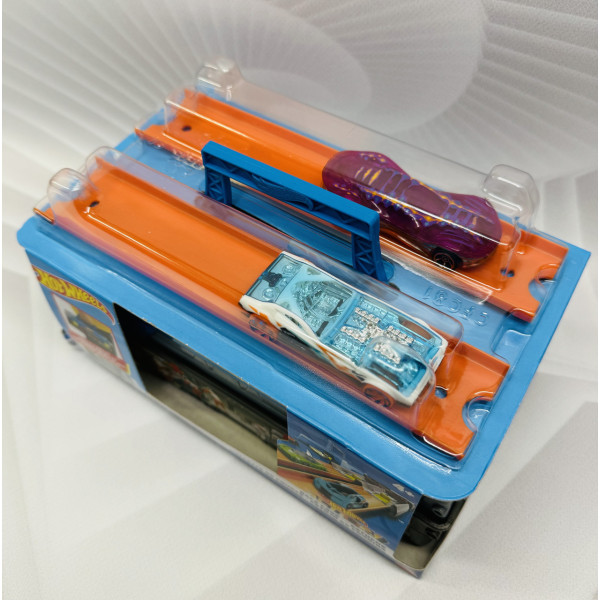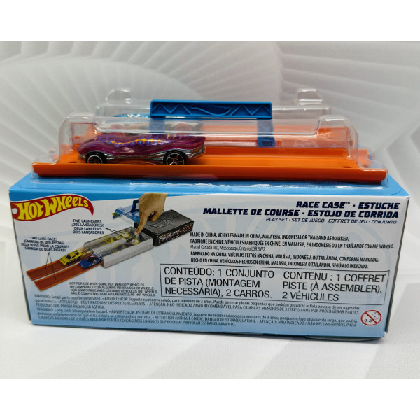 Набір треків Hot Wheels Race Case містить базові елементи для будь-якої гонки Hot Wheels: 2 пускові установки, 2 частини треку та 2 автомобілі Hot Wheels.