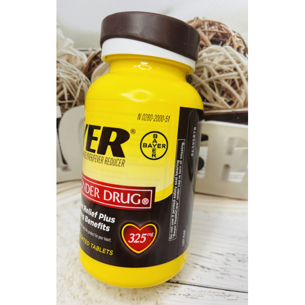 БЕЗ КОФЕЇНУ ТА НАТРІЮ: Справжній аспірин Bayer не містить натрію та кофеїну. Він також покритий оболонкою, щоб його було легше ковтати та не поздразнювати шлунок.ХарактеристикиОсновніВиробник