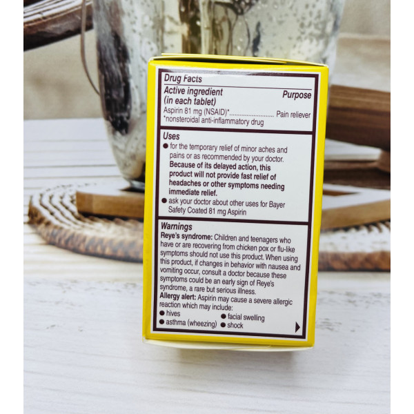 БЕЗ КОФЕЇНУ ТА НАТРІЮ: Справжній аспірин Bayer не містить натрію та кофеїну. Він також покритий оболонкою, щоб його було легше ковтати.ХарактеристикиОсновніВиробник