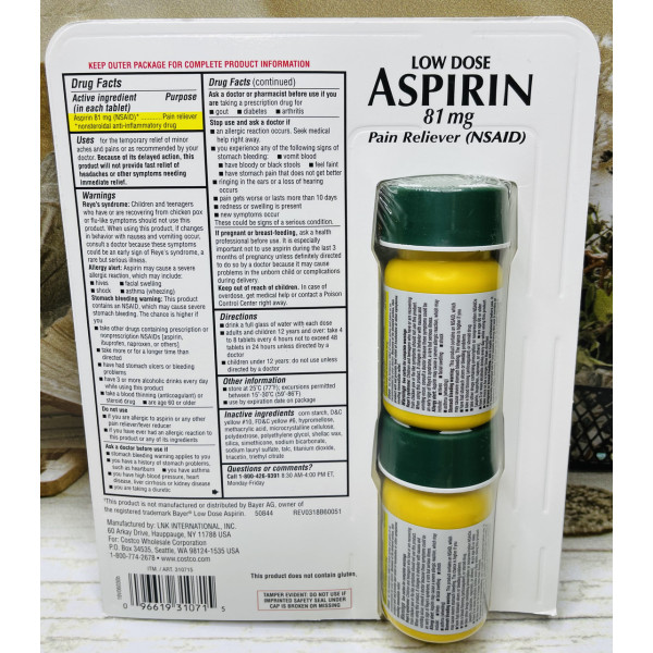 Аспірин сердечний Kirkland Aspirin Low dose 81mg, 730шт оригінал