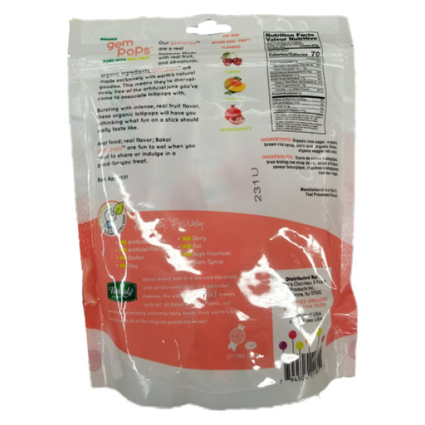 Bakol Organic Gem Pops - це чудовий вибір для тих, хто звертає увагу на якість та склад продуктів, що споживають. Ці льодяники виготовлені з виключно сертифікованих органічних інгредієнтів, що гарантує їх природність та якість. Завдяки цьому вони підходять навіть для веганів і вегетаріанців.