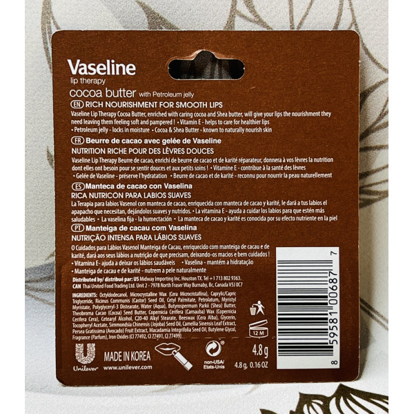 Бальзам для губ Vaseline lip therapy Какао оригінал
